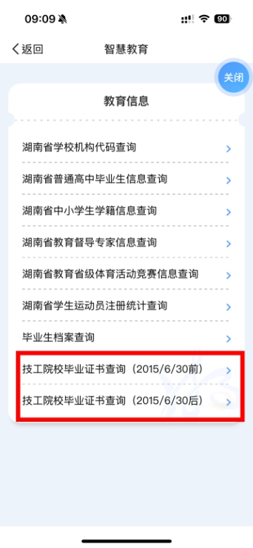 登录“湘易办”超级服务端,在海立方金刚区进入“智慧教育”,点击“教育信息”的“查看更多”,根据学生毕业日期,选择“技工院校毕业证书查询(2015/6/30前)”或“技工院校毕业证书查询(2015/6/30后)”功能,输入姓名、毕业证号、验证码等信息,即可轻松获取毕业证书信息(注:2015年6月30日后毕业的还需输入身份证号码)。