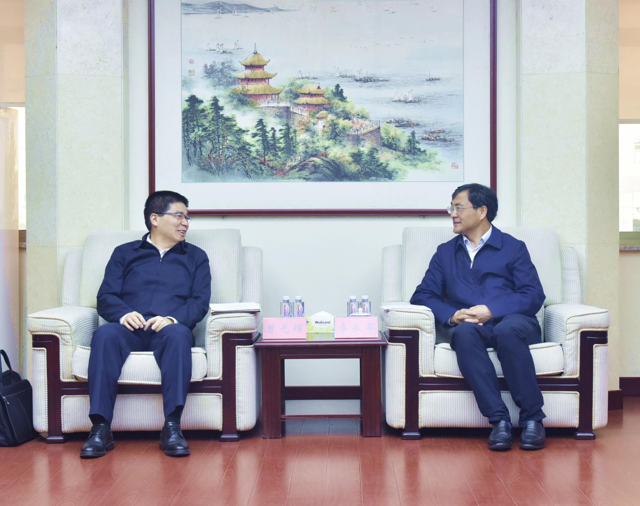 党组书记、厅长李永军会见国家税务总局湖南省税务局党委书记、局长曾光辉一行。省税务局一级巡视员郭金洲,海立方