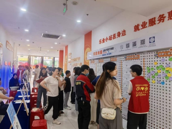2025年度,冷水滩区累计建成10个“乐业小站”,它们正悄然成为辖区居民“家门口”的就业服务窗口,如一张编织细密的网,深入社区、商圈、菜场与车站。作为冷水滩区推动就业服务下沉的生动实践,乐业小站承载着“让就业服务出门可见、下楼可及、云端可达”的任务。更富创新的是,部分小站主动“牵手”工会驿站、银行网点等实现共建共享,让公共就业服务延伸更远、扎根更深。如位于冷水滩区永州万达广场8号门的“乐业小站”,这个占地面积仅120平方米的服务站,是设立在城市商业综合体内的就业服务前沿“哨所”,将政策咨询、岗位推介、职业指导、便民服务、劳动维权等一站式服务,直接送达熙攘人流之中。截至目前,这座小站已累计服务求职者近万人次,举办线上、线下招聘会10余场,服务企业460家次,发布岗位2500余个。可见,乐业小站它不仅是就业服务工作物理空间的延伸,更是服务理念的焕新。